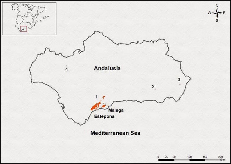 Foto 1: Localización de las rocas ultramáficas en la Península y Andalucía