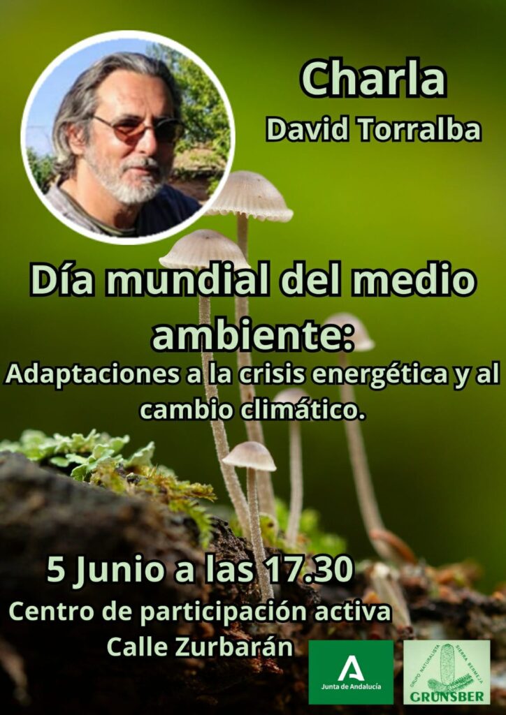 El compañero David Torralba Portilla, experimentado naturalista, autor del primer estudio integral de Sierra Bermeja (1991) y socio de Grunsber, con motivio del Día Mundial del Medio Ambiente, impartió ayer 5 de junio una charla divulgativa en el Centro de Participación Activa de Estepona (Hogar del Pensionista) con el título «Adaptaciones a la crisis energética y al cambio climático«.