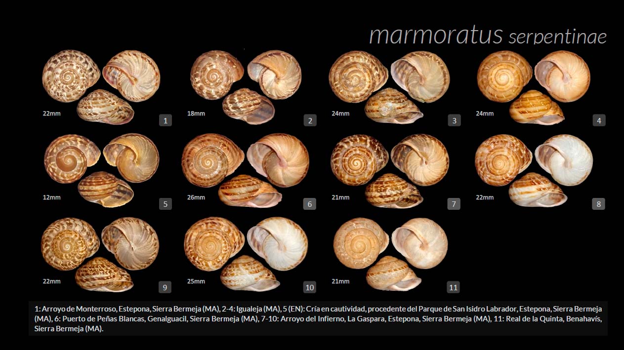 Recientemente se publicó en la revista Graellsia (Líetor et al., 2024) una revisión de la hasta ahora considerada como especie Iberus serpentinae, a cargo de estos mismos autores y también en colaboración con Ismael Pérez, donde se propone que I. serpentinae podría tratarse de un ecotipo de I. m. marmoratus especialmente adaptado a una litología hostil para la mayoría de gasterópodos terrestres como son las peridotitas, con diferencias entre ambos taxones que podrían apuntar a una incipiente diferenciación ecotípica, aunque no suficiente para delimitar especies distintas.